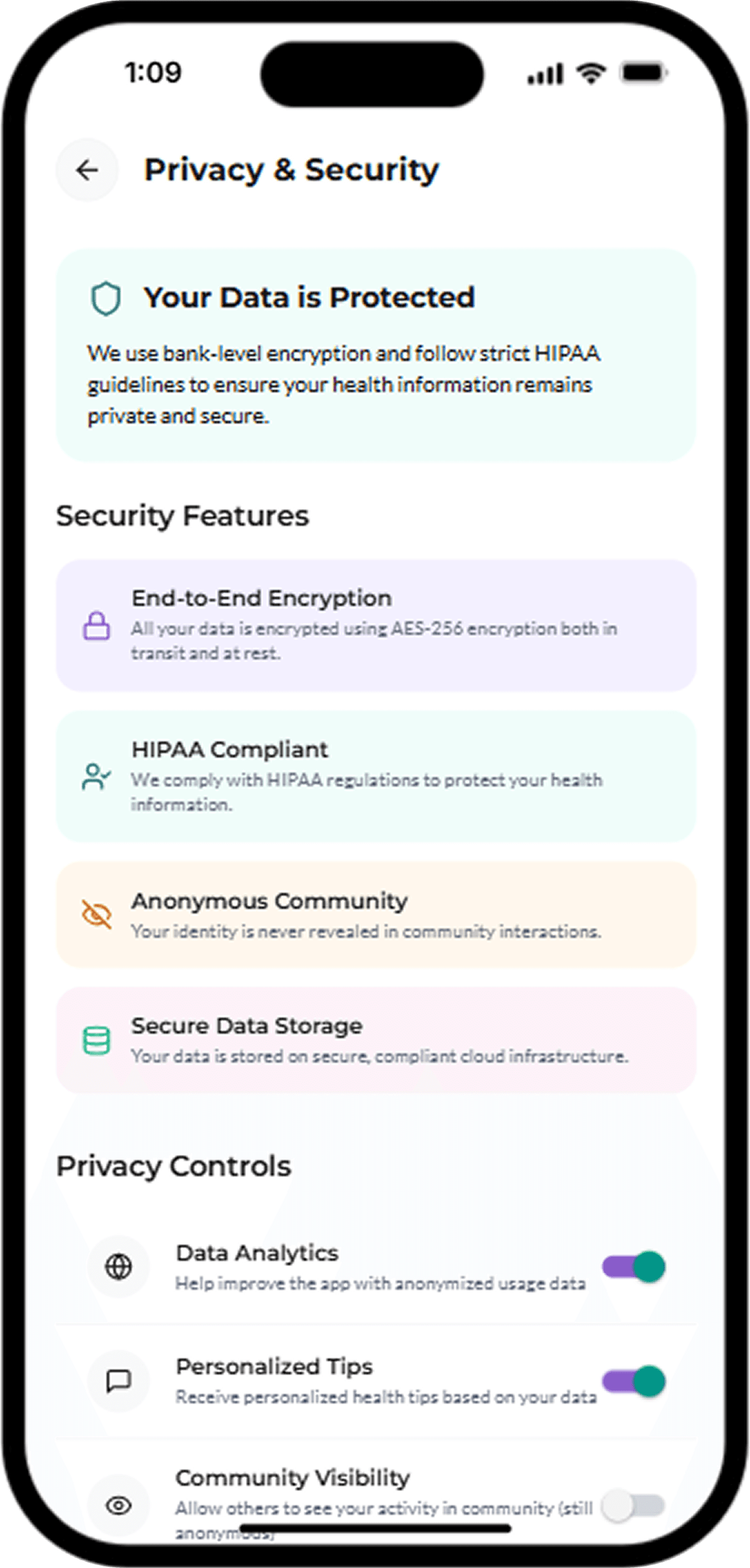 Enjoy tailored insights with full privacy, protected by encryption and anonymous options